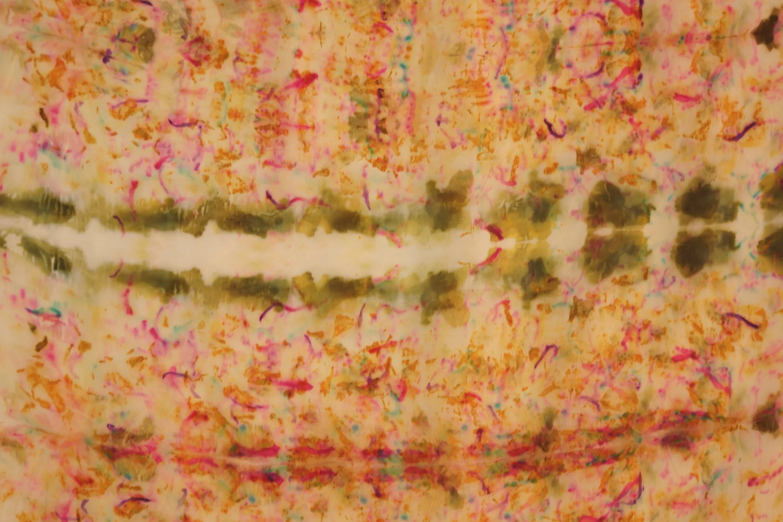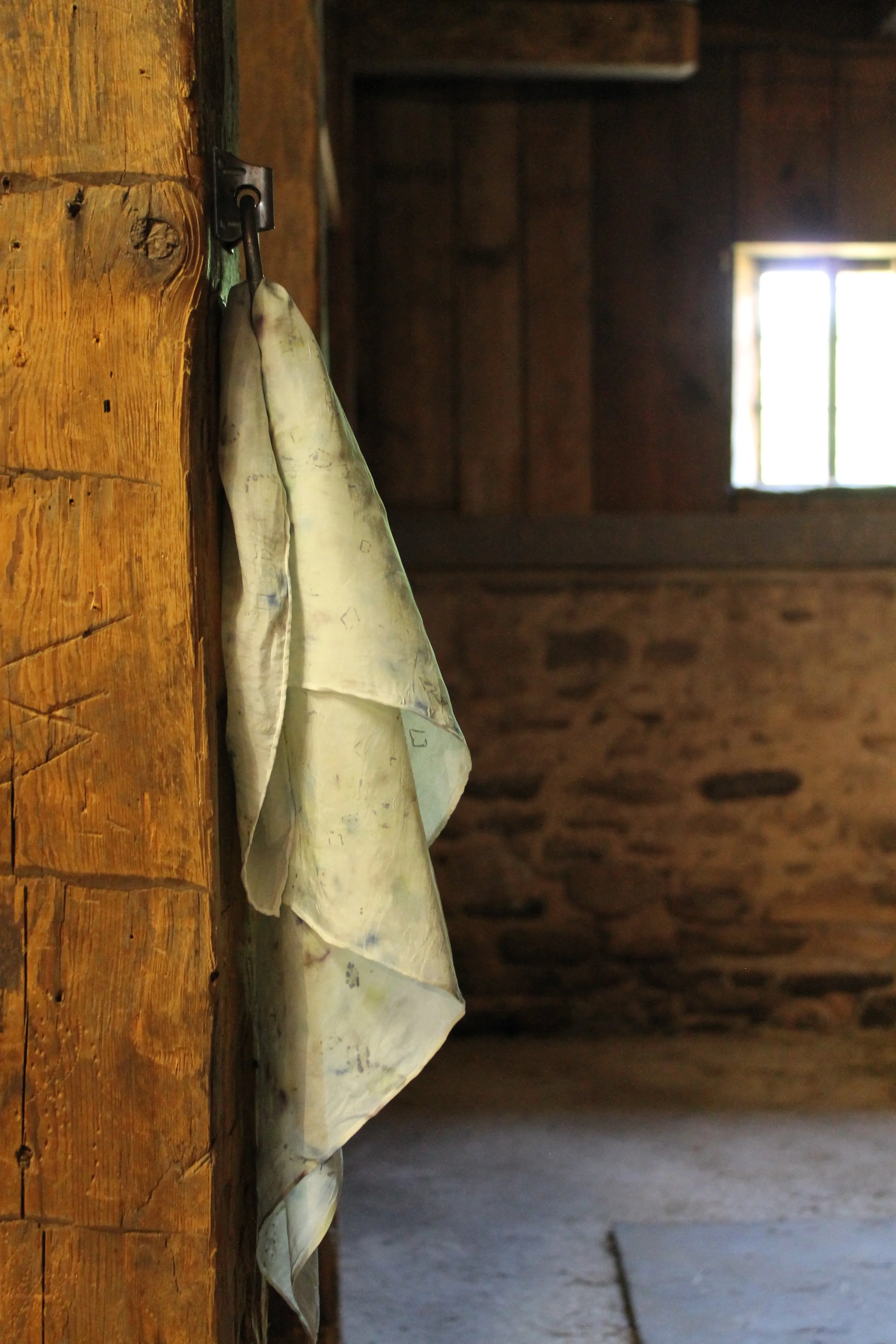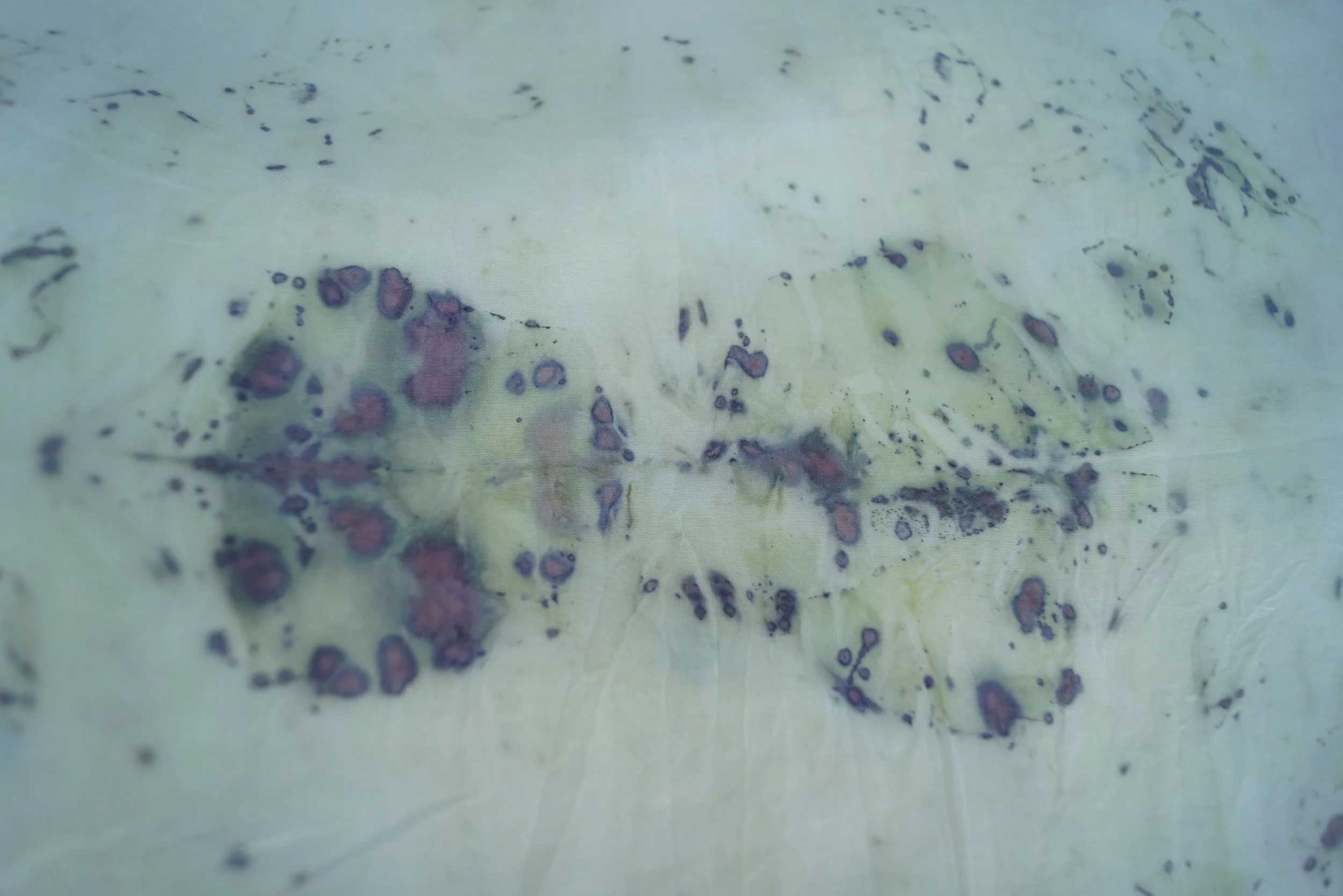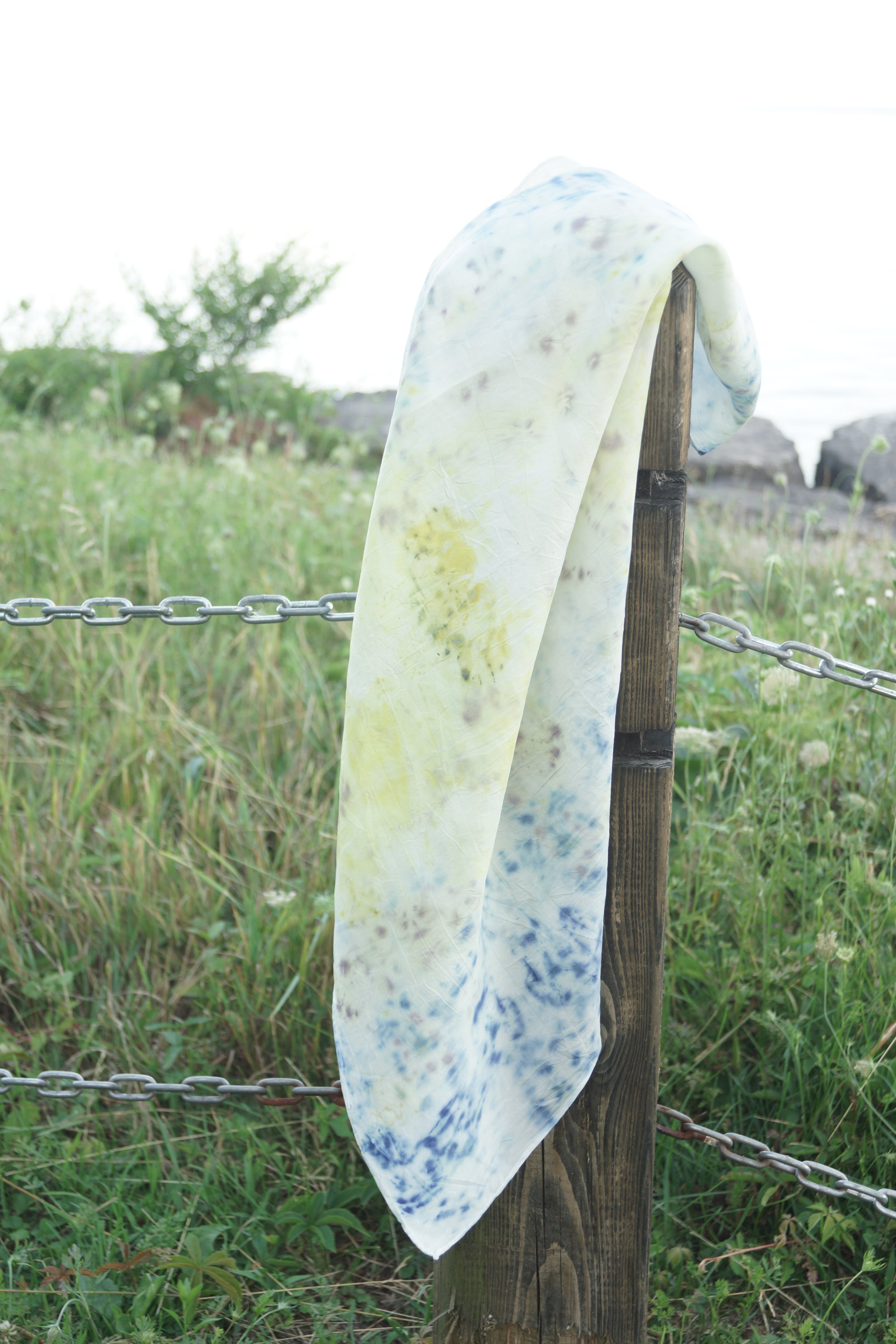 Using foraged forest materials and home grown dye material eco printed on Silk and Cotton fabric to adorn your body or home.
