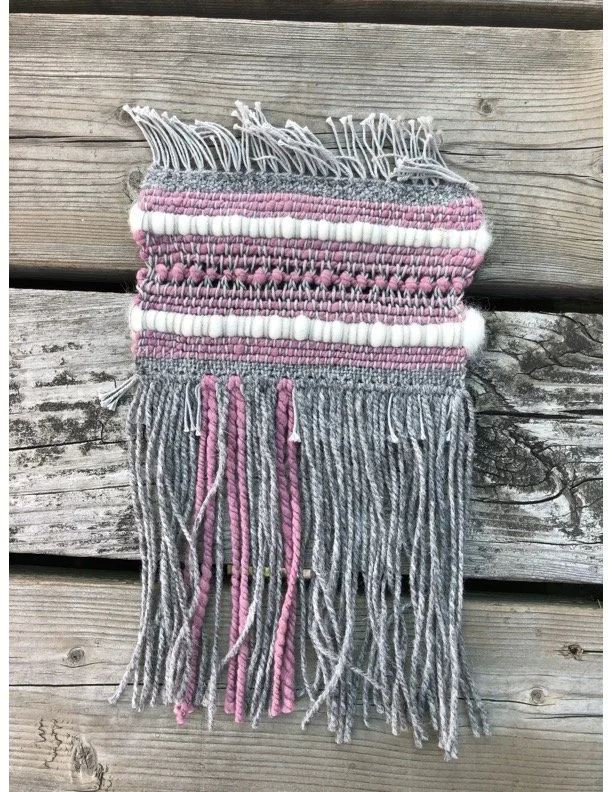 Lake Weaves Native plants collected along the St. Lawrence used to dye hand spun corriedale wool. Hand Woven wall hangings reflecting the local landscape it was harvested from.